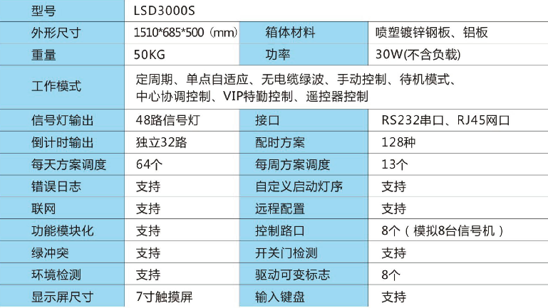 LSD3000S型交通信號(hào)控制機(jī)采用先進(jìn),穩(wěn)定、可靠的模塊化多處理器、多總線(xiàn)系統(tǒng)結(jié)構(gòu)。采用高速ARM控制器及大規(guī)模集成電路,實(shí)時(shí)運(yùn)算道路交通信息,如道路交通狀態(tài)、道路車(chē)流量。全部信號(hào)機(jī)可以組成城城網(wǎng),完成于指揮中心信息交換。根據(jù)城市交通模型進(jìn)行云計(jì)算,計(jì)算數(shù)據(jù)精準(zhǔn)。帶有一塊7寸液晶觸摸顯示屏,和一個(gè)數(shù)字鍵盤(pán)。